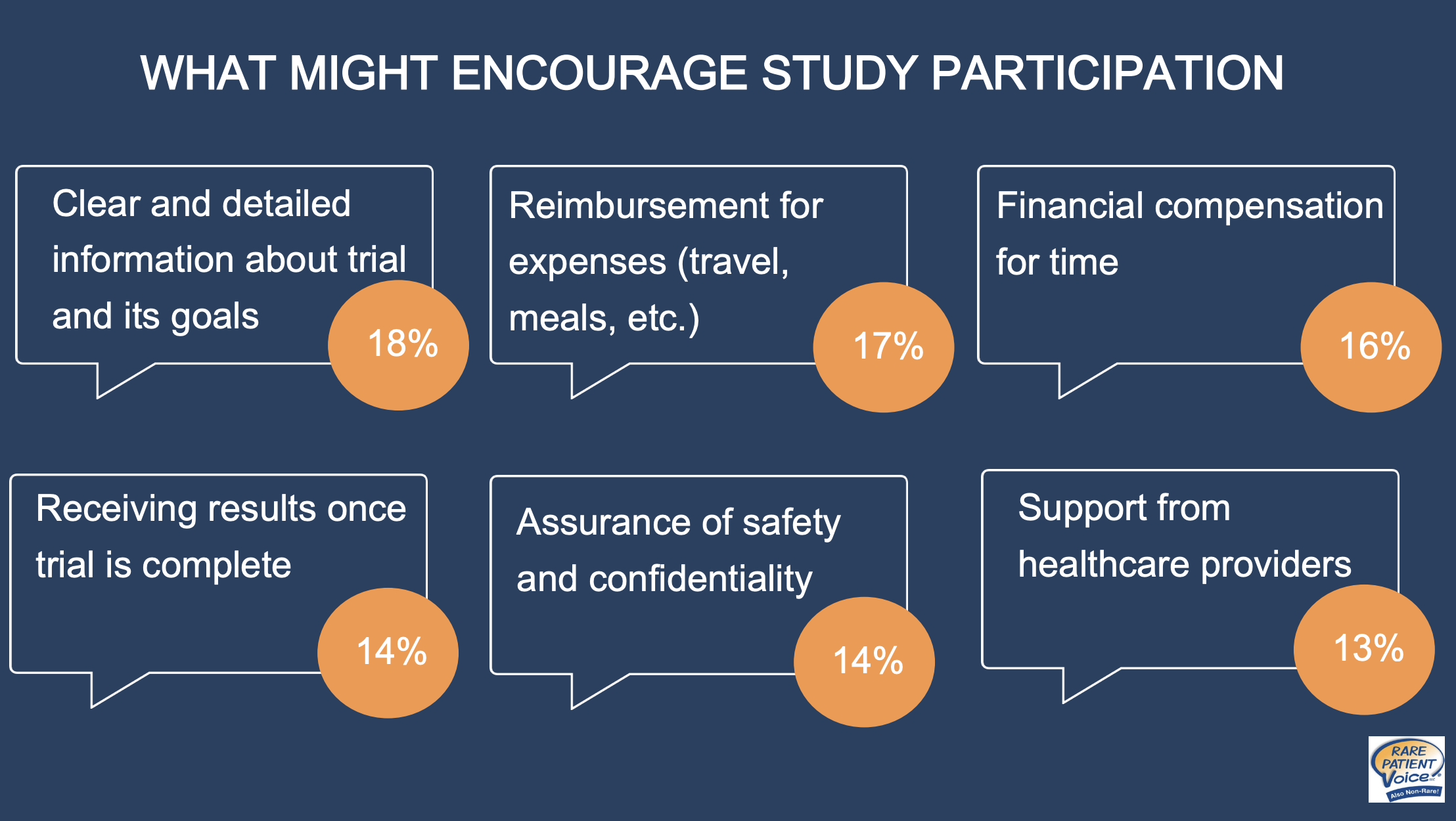 Have you ever thought about participating in a clinical trial? What would make you more likely to do so? In a study conducted by RPV last year, we asked 1,147 patients in the U.S. that question. As they told us, there are a number of factors that would make them more apt to participate, from receiving clear information about the trial and its goals to being compensated for time and travel expenses.
